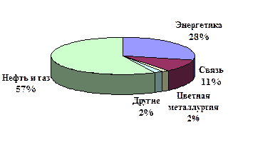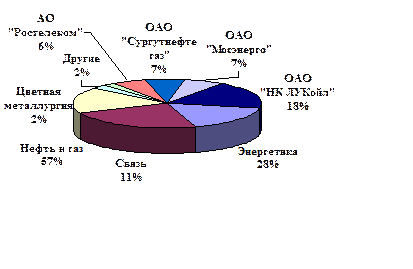 Доли отраслей в капитализации российского рынка акций показаны на рис. 2.
