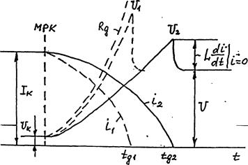 зависит от интенсивности действия коммутирующего устройства. При отключении индуктивной цепи процесс гашения дуги затягивается и на контактах появляется перенапряжение