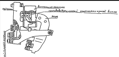 С целью устранения вибрации якоря во включенном положении на полюсах магнитной системы устанавливаются короткозамкнутые витки, которые наиболее эффективны при малом рабочем зазоре. Для плотного прилегания полюсов их поверхность должна шлифоваться.