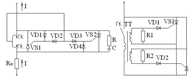 При снятии сигнала управления (перегрузка, потеря фазы, нажатие кнопки «Стоп») тиристоры закрываются. Следующий полупериод ток пропускается диодами.