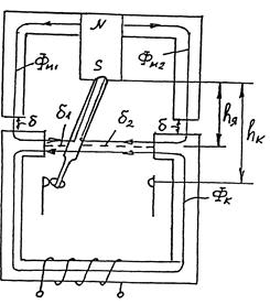 Чем ближе значение δ1 и δ2, тем меньше мдс срабатывания. Мощность срабатывания реле снижается до 10-6 Вт.