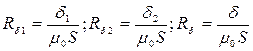 - магнитное сопротивление зазоров δ1 и δ2, паразитного δ;