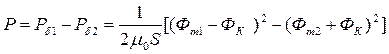 Результирующее усилие, действующее на якорь, равно разности усилий, создаваемых в зазорах δ1 и δ2: