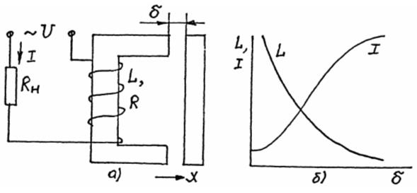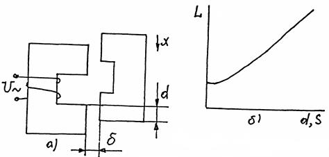 Индуктивность обмотки и протекающий по ней ток могут изменяться за счет изменения зазора δ или его площади S.