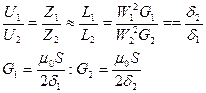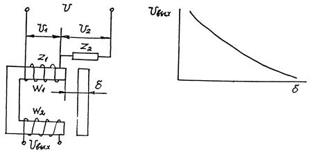 При увеличении δ1 ток I1 в обмотке W1 увеличивается, а ток I2 в обмотке W2 уменьшается, так как зазор δ2= δ- δ1, тоже уменьшается.
