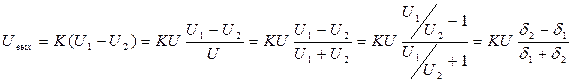 Таким образом, выходное напряжение прямо пропорционально разности зазоров δ2 - δ1.
