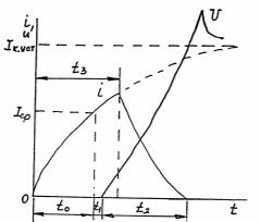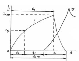Время t0 зависит от уставки по току срабатывания и скорости нарастания тока, которая определятся параметрами цепи К3.