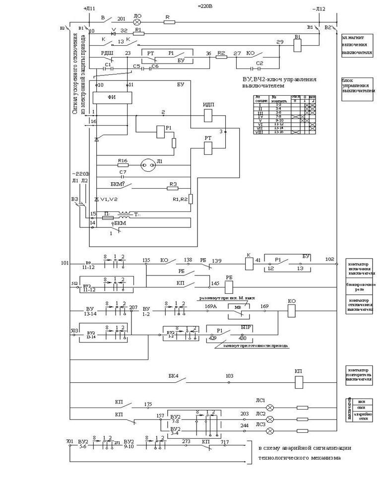 Таким образом, при включении выключателя, сначала приводится в готовность механизм быстродействующего привода и свободного расцепления.