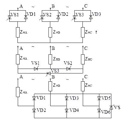 Рисунок 66. Силовые схемы тиристорных ключей переменного тока.