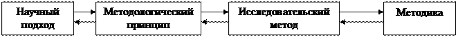 Следовательно, можно выстроить определенный ряд родовидовой зависимости (рис.2). Параллельные стрелки на рисунке означают возможность методологического движения в обоих направлениях: от научного подхода до используемых им методик, от методики до лежащих в ее основе представлений о предмете и методе психологии.