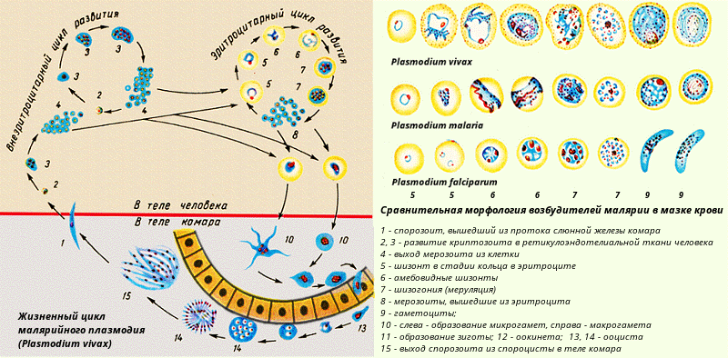 Таким образом, для человека инвазионной стадией является спорозоит, а для комара - макро- и микрогаметоциты.