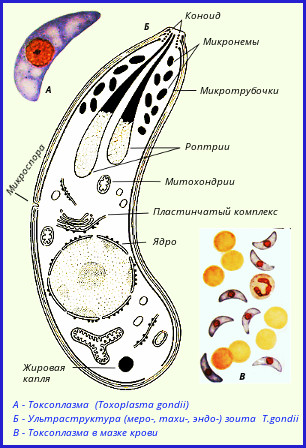 Локализация. Клетки головного мозга, печени, селезенки, лимфатических узлов, сердечной и скелетных мышцах, тканях глаза, иногда в легких и стенках матки, оболочках плода. Окончательными хозяевами служат кошки и другие представители семейства кошачьих, промежуточными — различные виды птиц и млекопитающих, а также человек.