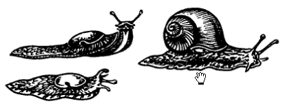К брюхоногим моллюскам относятся слизни, получившие название из-за обильно выделяемой слизи. Раковины у них нет. Обитают на суше во влажных местах и питаются растениями, грибами, некоторые встречаются на огородах, нанося вред культурным растениям.
