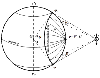 Рис. 23.2. Зона радиовидимости ИСЗ