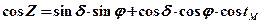 При круговой орбите НКА предвычисленные значения определяемых радионавигационных параметров можно получить по формулам сферической тригонометрии (рис. 23.3) из параллактического треугольника спутника ZCPN в котором: