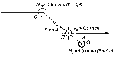 Рис. 24.24. Счисление от вероятнейшего места (3МО < МСЧ)