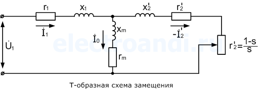 Как и у трансформатора, у асинхронного двигателя есть Т-образная схема замещения.