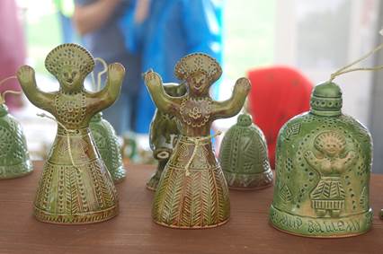 Первым пунктом моего посещения оказался музей-выставка игрушек «Петровская игрушка». Частный. Как оказалось, государство еще с советским времен перестало уделять на этот промысел внимание, а в некоторую пору даже запрещало эту деятельность. В следствие этого село Петровское, в свое время являвшееся центром по изготовлению глиняных игрушек стало приходить в упадок и в настоящее время по словам директора музея полностью покинуто жителями. Но его слава пока еще не забыта и увековечена в названии игрушек. Лепили игрушки не только ради развлечения и красоты, но в них вкладывали глубокий культурный и сакральный смысл того времени. Основной сюжет петровской игрушки занимает Солнце и различные даты и события: посевная, сбор урожая, наступление весны, солнцестояние и т.д. Чаще всего лепили изображение бабы с поднятыми руками, либо руками в бок. Как мне объяснили, это символизировало обращение к Солнцу, а звали такую бабу Макоша или Кикимора с ударением на слог «о».
