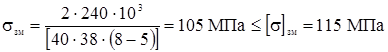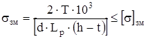 t – глибина шпонкового пазу у валу, t=5 мм;