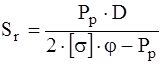 У відповідності з ГОСТ 14249-89 розрахунок товщини гладкої циліндричної обичайки, навантаженої внутрішнім надлишковим тиском, виконують за формулами: