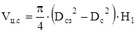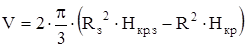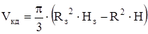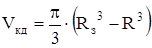 – об‘єм металу, що утворює конічне днище, розрахований як різниця об‘ємів зовнішнього та внутрішнього конусів, м³;
