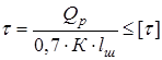 Міцність кутових зварних швів, які поєднують ребра опор з обичайкою сорочки апарата, перевіряють на зрізування за формулою