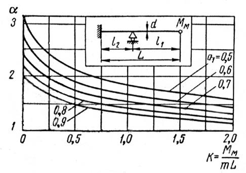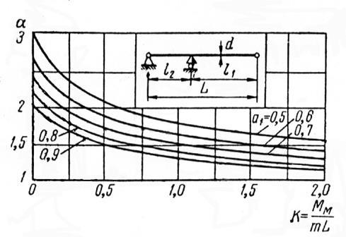 Величину α визначають за графіками (рис.5.2) в залежності від розрахункової схеми вала.