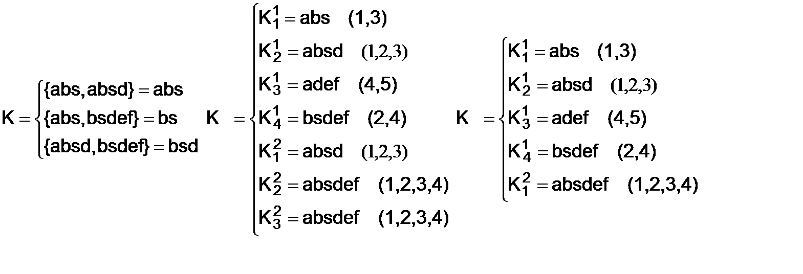 Для конфликтных слов K1, K2 полученная цепочка одинаковая, проявляется не парный, а тройной конфликт. Конфликтное множество формируется путем объединения множеств от K1, K2.