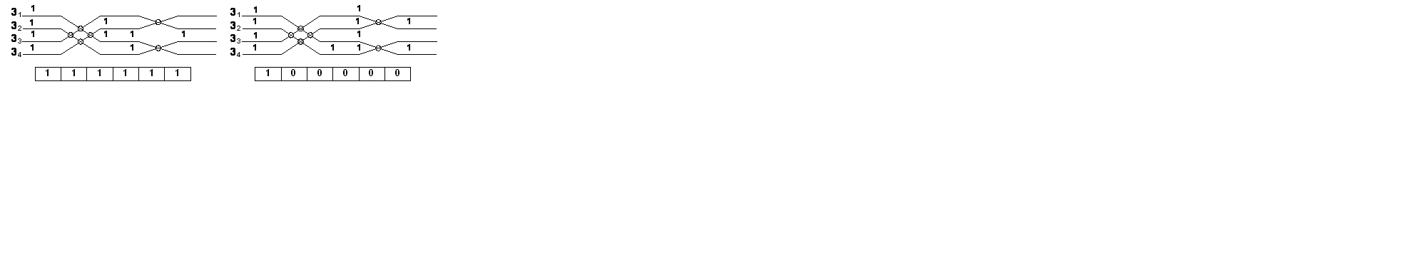 Рассмотрим структуры четырехвходовых арбитров, для которых заданы значения Q1=111111 и Q2=100000 соответственно (рис.7).