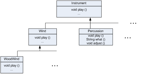 В оркестр класса Music можно добавить новые типы, не изменяя метод tune (). Для этого метод должен оперировать интерфейсом базового класса- т.е.использовать только методы базового класса..
