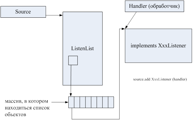 public void removeXxxListener(XxxListener el) – для отмены регистрации