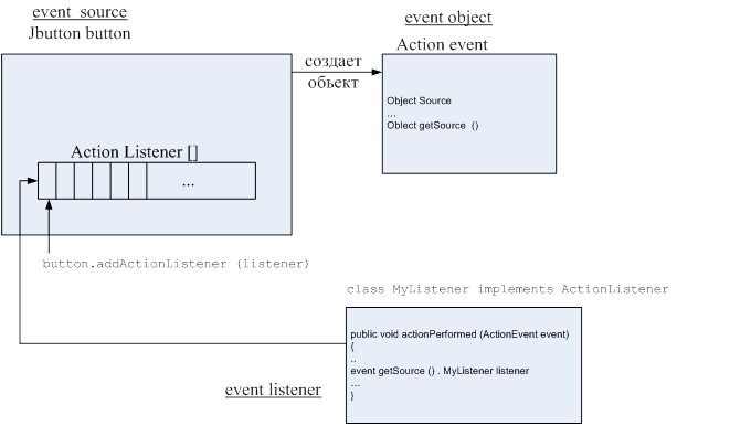 Событие – объект. Суперкласс- java.util.EventOblect. Полезный метод- object.getSource(). Информирует об источнике события.