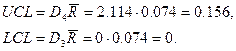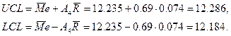 , взятому из таблицы ГОСТ Р 50779.42-99 в зависимости от объема выборки рассчитаем контрольные границы: