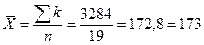 | Номер измерения i | Результат измерения x |