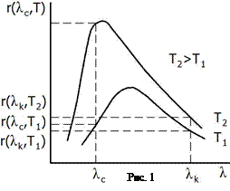 На рис. 1 показано, что отношение спектральной плотности энергетической светимости лампы, например, в синей и красной частях спектра, есть некоторая функция, возрастающая с повышением температуры: