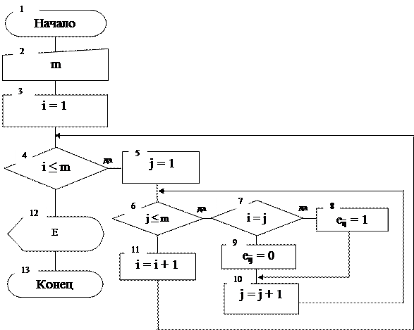 Схема алгоритма заполнения матрицы Е: