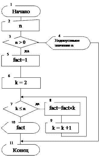 Выходные данные: fact – переменная, хранящая значение n!, целое число.