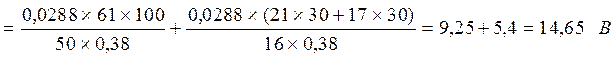 Поскольку участок 0 - 3 состоит из участков с проводами разного сечения, потерю напряжения рассчитываем по отдельности с последующим суммированием: