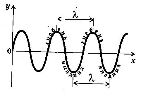 Длина волны – это расстояние, на которое распространяется волна за время равное периоду или расстояние между ближайшими точками, колеблющимися в одинаковой фазе.