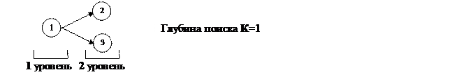 Если целевых вершин нет и максимальная глубина К поиска не достигнута, то берется верхняя вершина и строятся связанные с ней вершины
