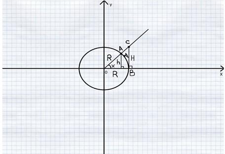 Рассмотрим круг радиуса R с центром в точке О. Пусть ОА образует угол с x с OB. Пусть площадь треугольника OAB равна