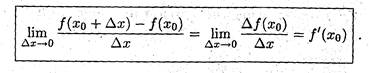 * Производной функции f(x) в точке x0 называется предел отношения приращения функции к приращению аргумента, при стремлении последнего к нулю