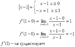 Пример 2. Вычислить производную функции f(x)= | x-1 | в точке x=1