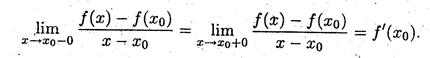Если функция дифференцируема в точке, то её левая и правая производные равны, т.е.