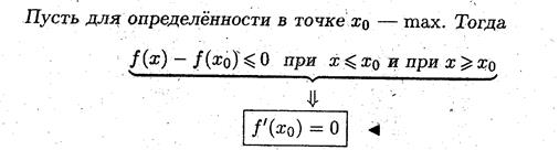 и испытывает в этой точке локальный экстремум, то тогда её производная в этой точке равна нулю.