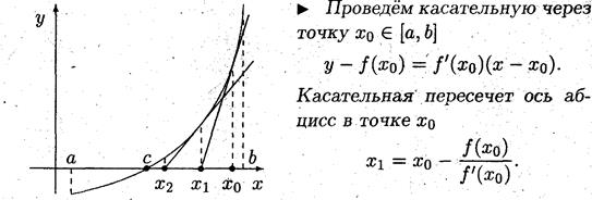 Теперь проведём касательную через точку х 1, которая пересечет ось абсцисс в точке х 2