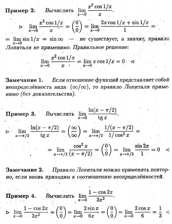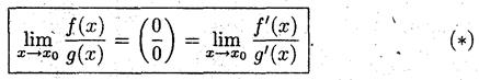 * Предел частного дифференцируемых функций, в случае неопределённости вида (0/0), равен пределу частного производных функций, если этот предел существует.