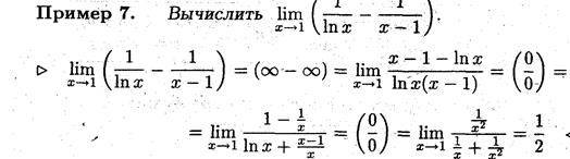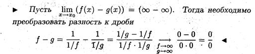 Замечание 5. Правило Лопиталя можно применять для раскрытия неопреде -лённостей вида (∞ - ∞), поскольку она сводится к неопределённости вида (0/0).