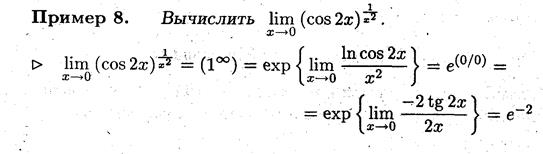 Замечание 6. Правило Лопиталя после логарифмирования можно применять для раскрытия неопределённостей вида