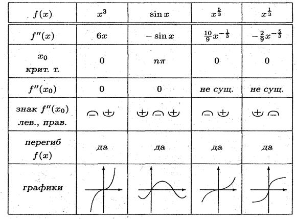 Пример 1. Исследовать на перегиб следующие функции: х3, sin x, x ⅓.